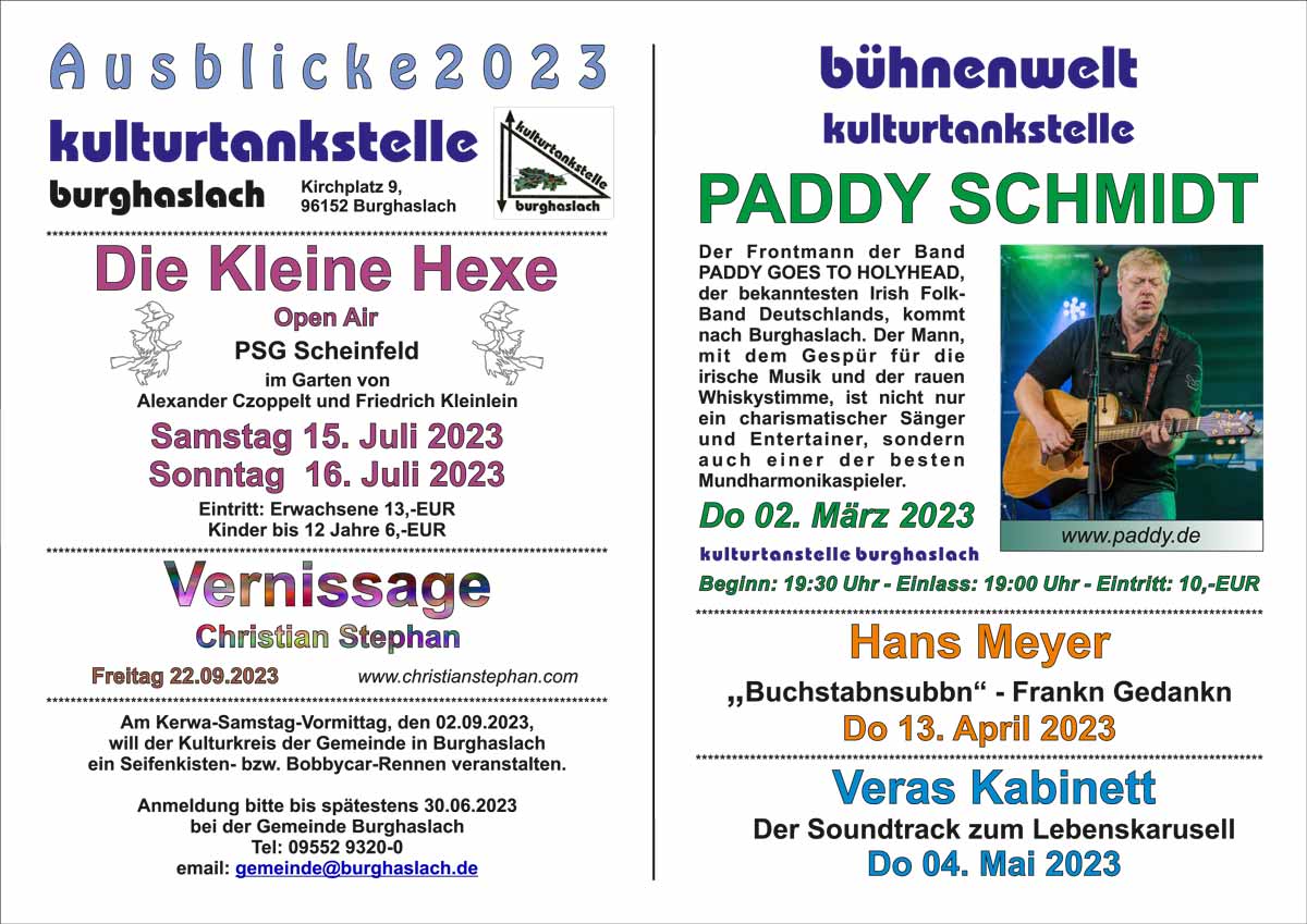 Ein breites Angebot mit unterschiedlichen Themen wie Kabarett, Dia-Vortrag, Theater, Lesungen, Geschichte von Burghaslach und seinen Bürgern, Ausstellungen wie Malerei, Plastik, Patchwork, Seidenmalerei, Klöppeln, Osterschmuck oder Musikveranstaltungen werden seitdem angeboten.
